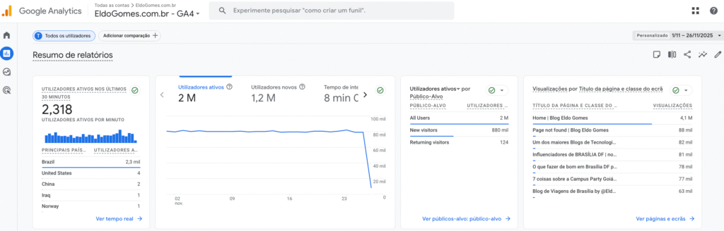 Blog EldoGomes.com.br , de 01 a 26 de novembro de 2026, antes mesmo de fechar 30 dias já alcança 2 milhões de expectadores