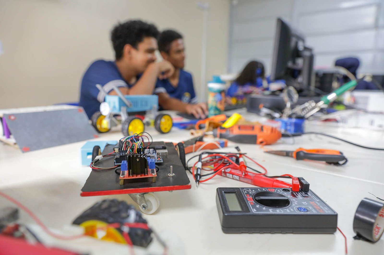 A robótica tem sido cada vez mais utilizada como uma ferramenta de aprendizagem. A rede pública de ensino do Distrito Federal tem aliado os currículos de ciências e matemática à tecnologia. As oficinas ofertadas dentro do modelo do ensino médio em tempo integral (EMTI), na maioria das vezes, são optativas, o que não significa salas vazias. Os alunos do Centro de Ensino Médio 3, do Gama, têm enfrentado verdadeiras disputas para participar das atividades do Laboratório de Robótica.