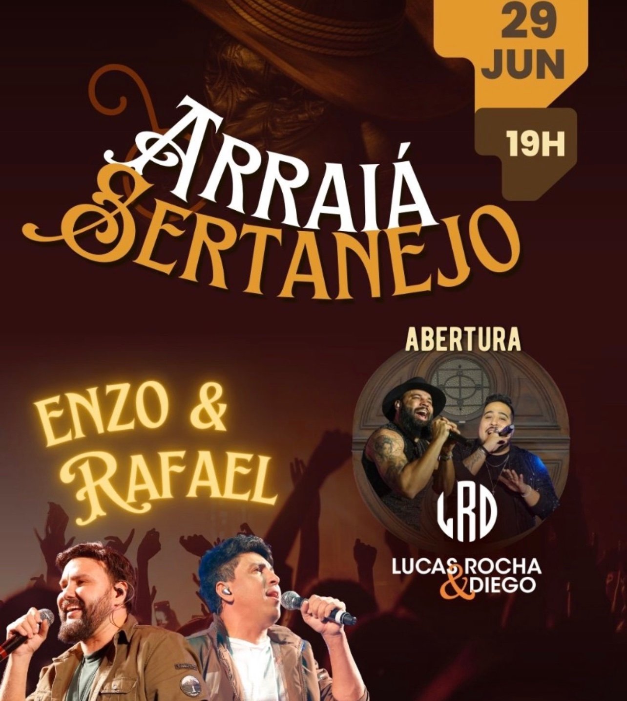 Tudo isso ao som do Enzo e Rafael que prometem fazer a gente cantar e dançar a noite toda! Abrindo o show deles teremos Lucas Rocha e Diego. Vai ser uma noite muito especial!