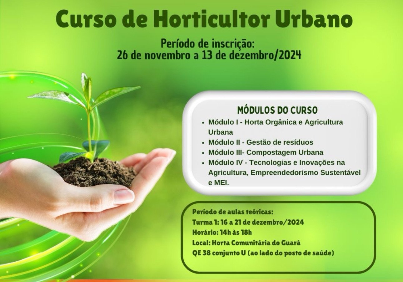 Local: No Guará, incluindo a Horta Comunitária do Guará, o Centro de Saúde nº 2 e o Centro Educacional 03 do Guará (Centrão).