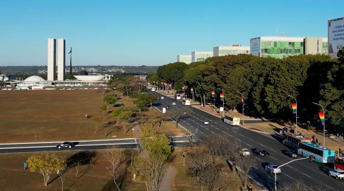 Pela primeira vez na história, a Esplanada dos Ministérios fica arco-íris. O coração político do Brasil ganhou 110 bandeiras em todos os postes de iluminação para lembrar o 28 de Junho – Dia Internacional do Orgulho LGBT.