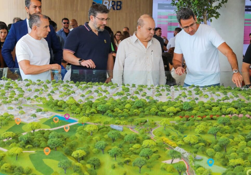 O governador Ibaneis Rocha participou neste sábado (23) do lançamento do condomínio residencial Reserva Jardim Botânico, localizado a cerca de 20 km do centro de Brasília. A iniciativa conta com financiamento do Banco de Brasília (BRB).
