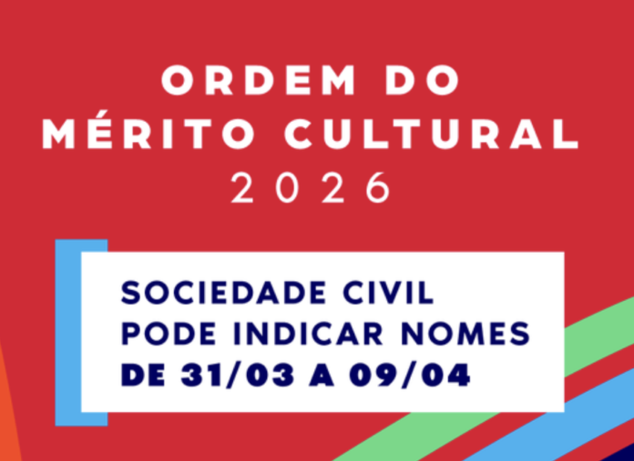 A partir desta terça-feira, (31), a sociedade terá a oportunidade de participar da escolha dos homenageados da Ordem do Mérito Cultural (OMC) 2026, a maior honraria pública concedida ao setor cultural pelo Governo do Brasil e Ministério da Cultura (MinC). Até 9 de abril, o público poderá indicar nomes de personalidades, órgãos, instituições ou coletivos que contribuíram para o desenvolvimento da cultura. O formulário on-line para indicações está disponível no site, acesse aqui.
