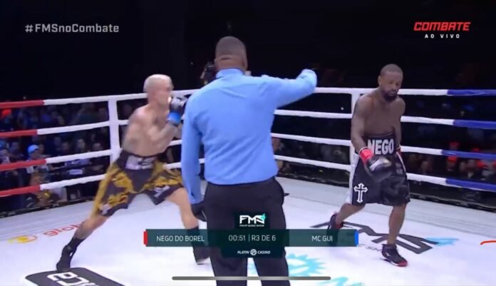 MC Gui venceu Nego do Borel por nocaute técnico no segundo round da luta que aconteceu no Fight Music Show 4, no dia 24 de fevereiro de 2024, na Arena Vibra São Paulo.