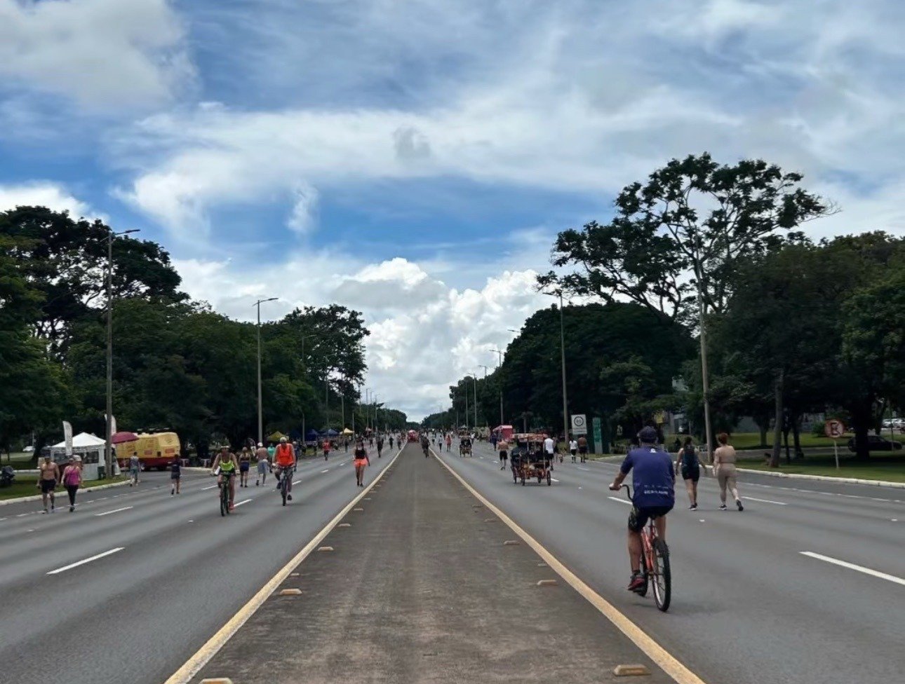 Das 6h às 18h, o trânsito de veículos dá lugar a pedestres, ciclistas, corredores e até famílias que aproveitam para passear com os pets. Durante o evento, é comum encontrar feirinhas de artesanato, barracas de comidas típicas e atividades gratuitas, como aulas de yoga e apresentações artísticas.