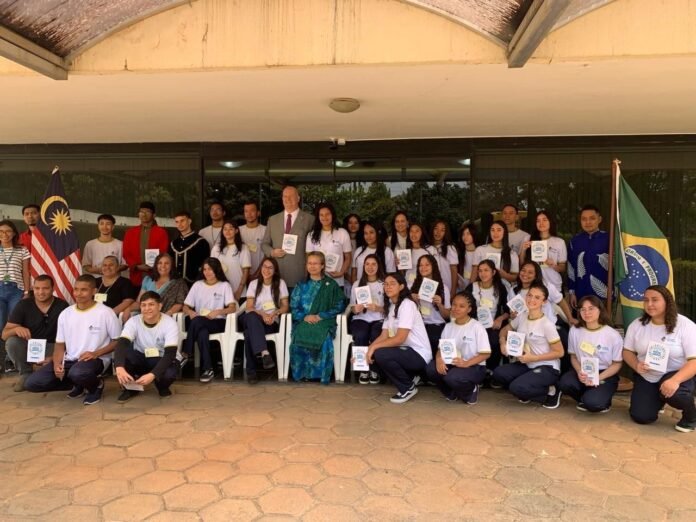 Os alunos foram recebidos pela embaixadora da Malásia no Brasil, Gloria Corina Anak Peter, e sua equipe, que proporcionaram uma imersão na cultura malaia, incluindo degustação de pratos típicos, exibição de vídeos e uma sessão de perguntas e respostas. Os estudantes também experimentaram trajes tradicionais da Malásia. “Foi uma alegria receber os alunos. Programas como esse estreitam os laços entre nossos países e nos permitem conhecer mais sobre os jovens brasileiros. Malásia e Brasil são amigos há 65 anos”, destacou a embaixadora.