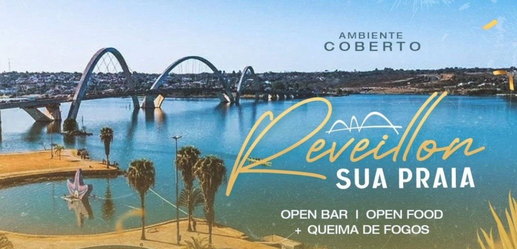 O Réveillon Sua Praia será realizado na Orla da Ponte JK, em Brasília, entre os dias 31 de dezembro de 2025 e 1º de janeiro de 2026, com início às 21h e encerramento às 7h. O evento presencial contará com estrutura de open bar e open food, além de programação que inclui queima de fogos sobre o Lago Paranoá.
